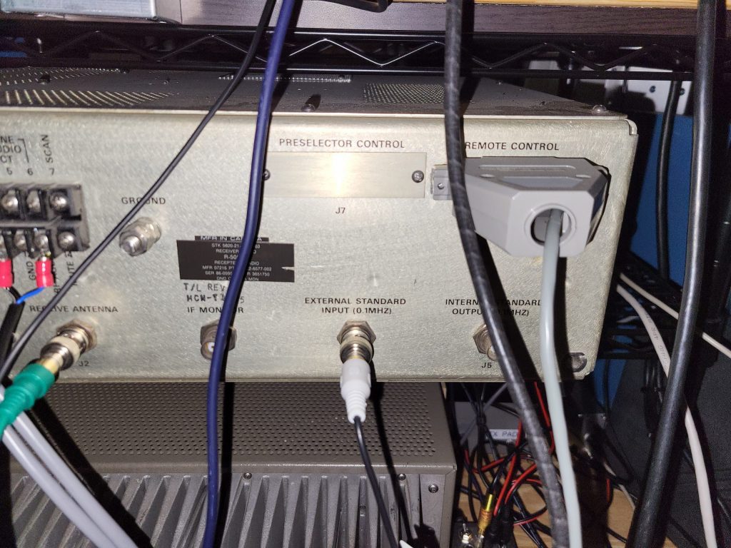 The HF-80 system was a major military/government communications platform, but its adaptability Ham radio can be an issue. The 851S-1 is not the only receiver that can be used with the HF-8014A. This page will discuss using the Remote Control port of the HF-2050 to extract frequency information using Monitor Status commands to set the HF-8014A exciter frequency to the HF-2050 frequency with a touch of a button. If the HF-8014A frequency standard is set to output 100khz and cabled to the HF-2050 100khz Ext Ref Input, the two systems will be exactly on frequency.