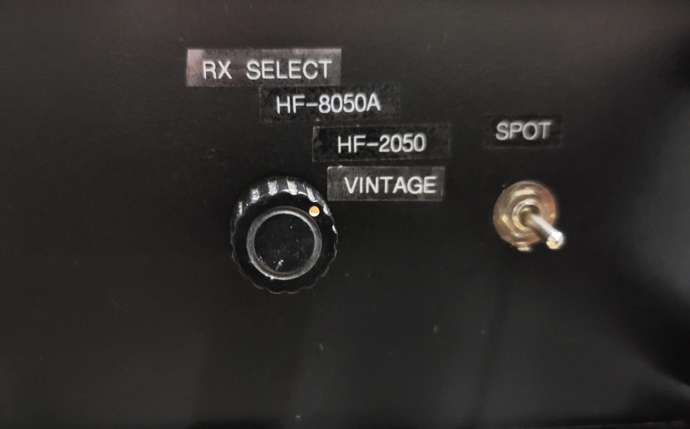 The receiver antenna and receiver mute function cable will have to be physically moved or switched to the vintage receiver. Before powering up the HF-80 System Controller, switch the Rx Selection switch to the Vintage position. The receiver frequency can be spotted by moving Spot switch on the System Controller to the up position. The HF-8014A will be keyed but the PA will not be keyed. Turning the System Controller frequency encoder, in my case, the Ten-Tec 302R keypad/encoder, will cause the HF-8014A frequency to change based on the encoder knob position. Tune the HF-8014A to achieve a zero beat in the receiver. Switch the Spot switch to the lower position when finished spotting.
